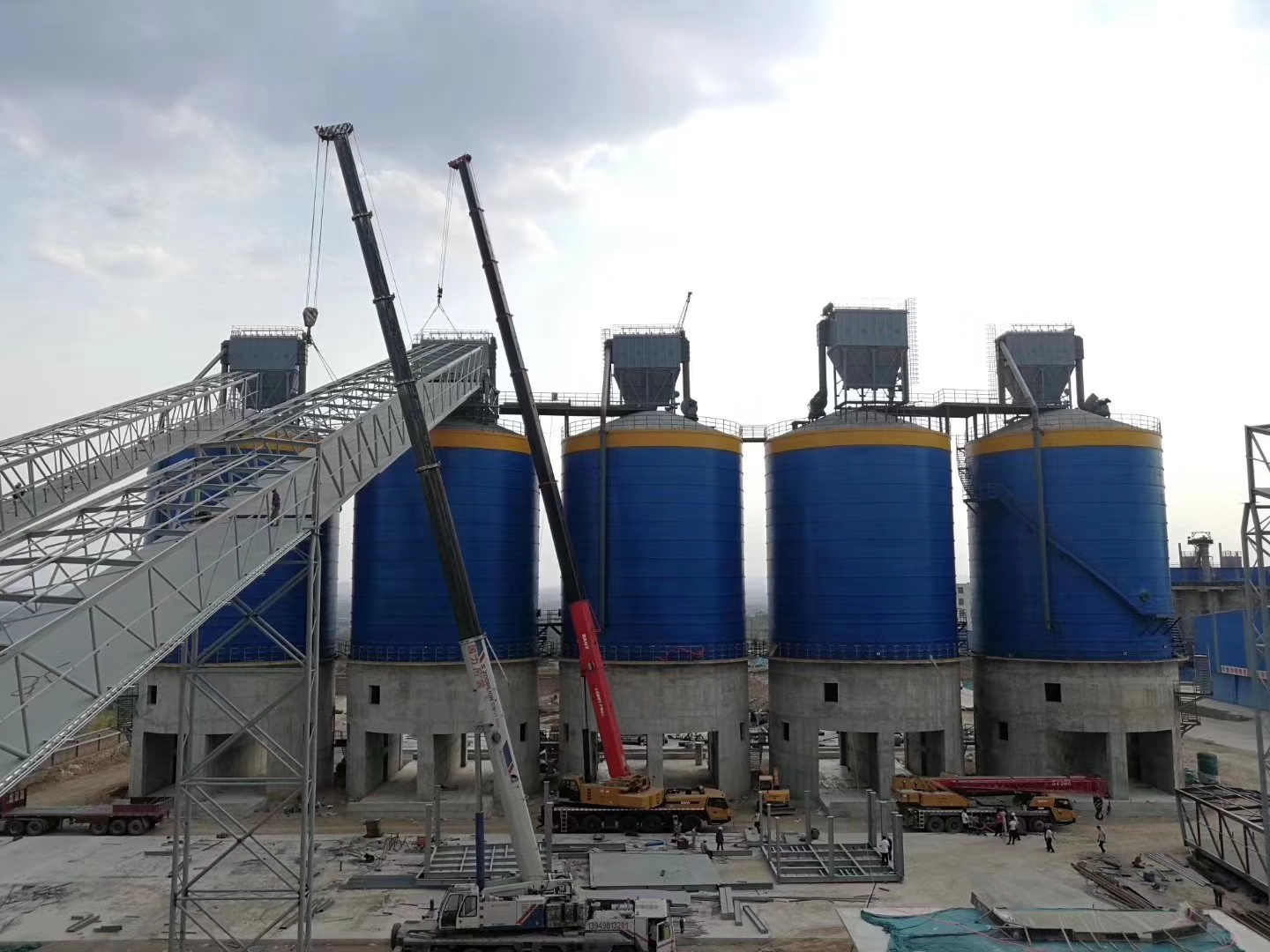 大型骨料钢板库仓储水泥显优势后,钢材报价平稳下来。许多水泥厂绚丽替换库房。比照一些焊接仓和砌筑型仓,大型骨料钢板库首要在根底造价上就省了一大笔钱。
